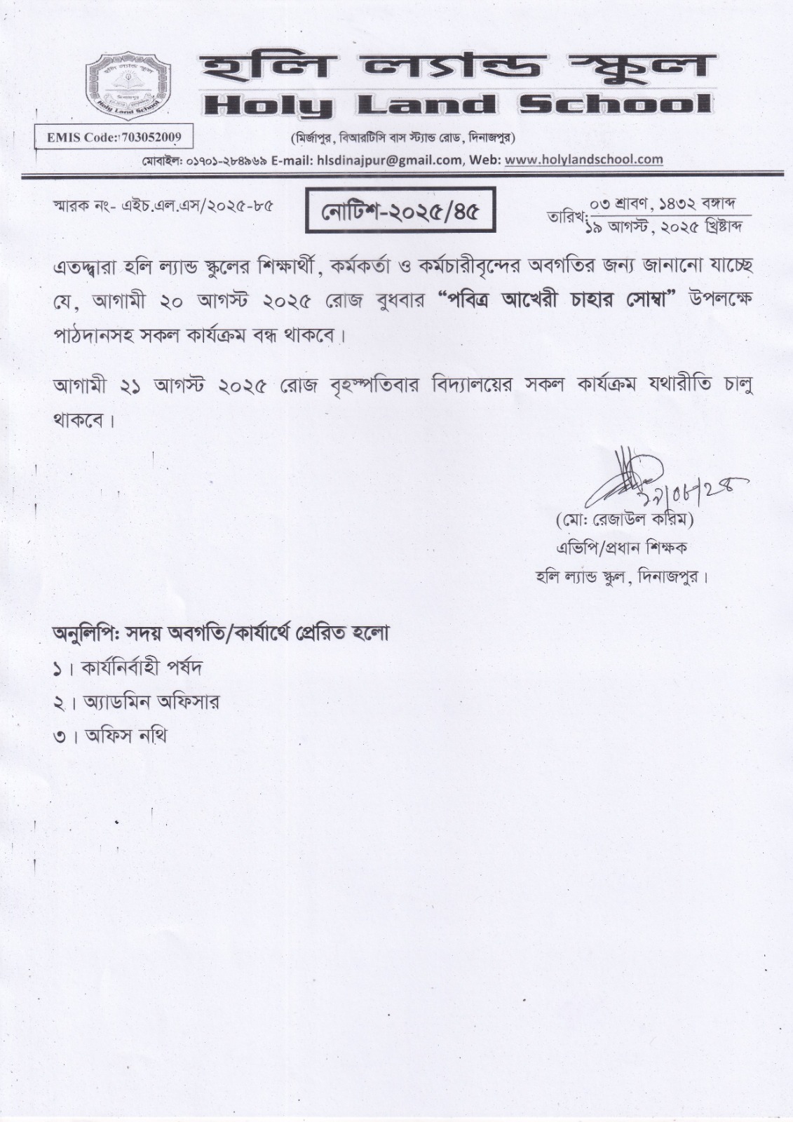 হলি ল্যান্ড কলেজ - দিনাজপুর