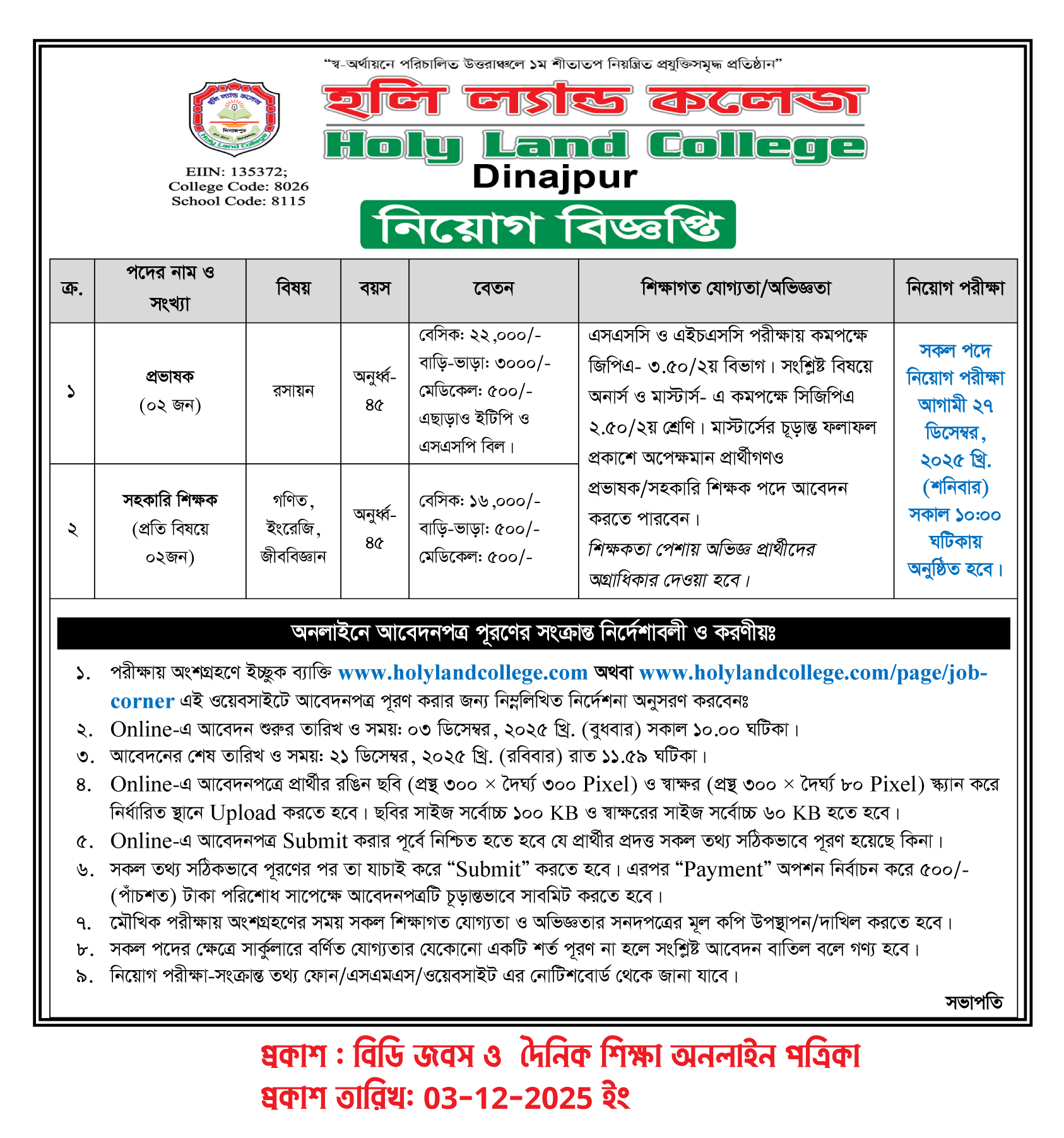 শিক্ষক নিয়োগ বিজ্ঞপ্তি (03.12.2025)