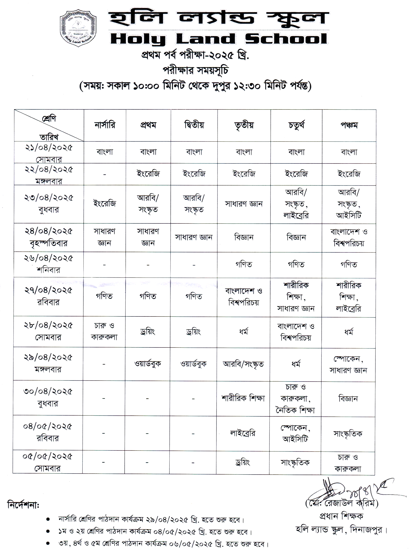 অর্ধ-বার্ষিক পরীক্ষার সময়সূচি - 2025